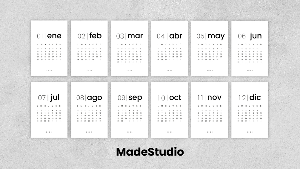 Incluye tarjetas de 12 meses año 2025 (8,5x12cm aprox). - Incluye plantilla para el soporte (recomendado imprimir en un papel más grueso).